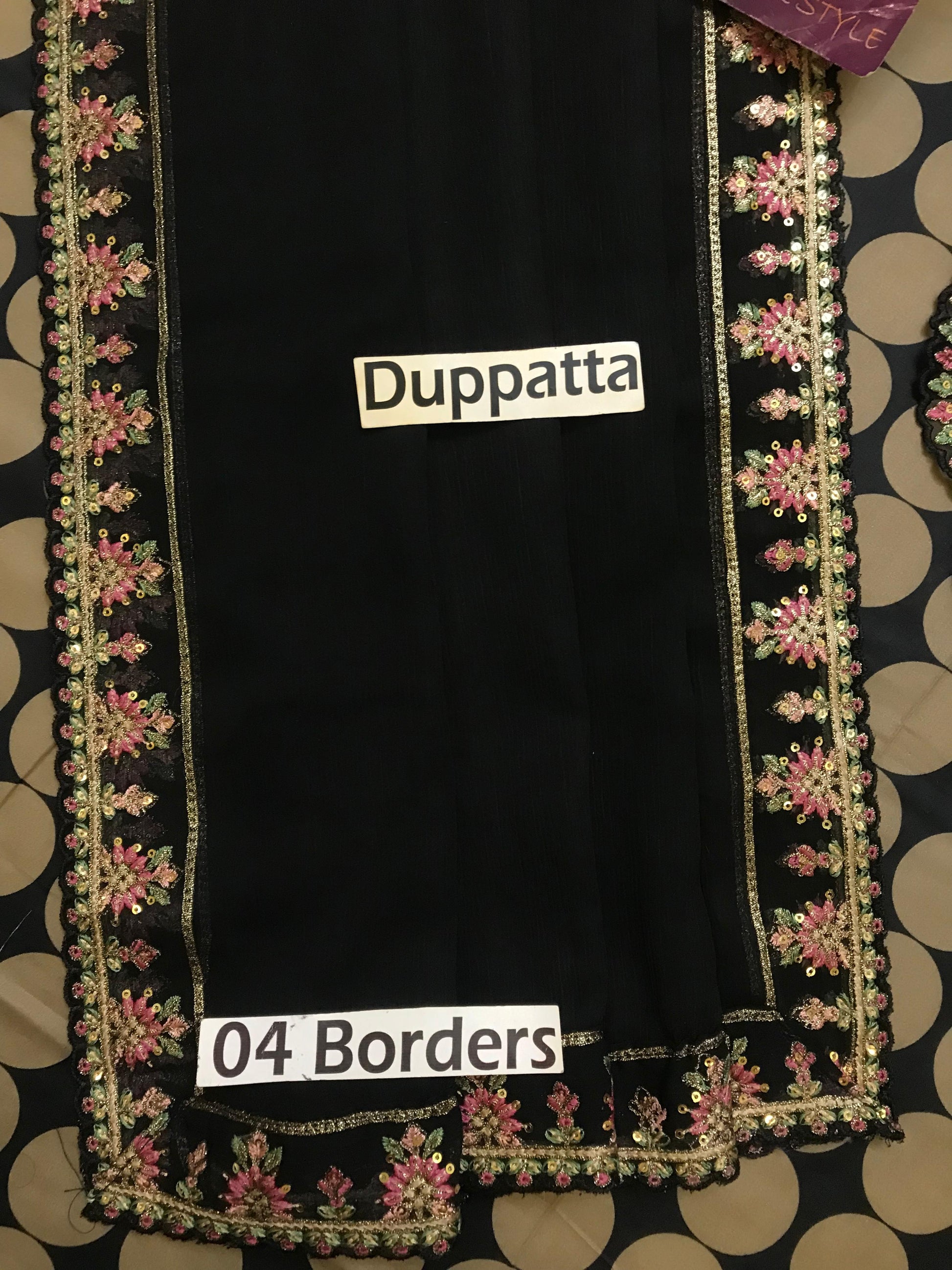 ▪Heavy Embroidered Chiffon Dupatta with 04 sides Cut work Border Applic