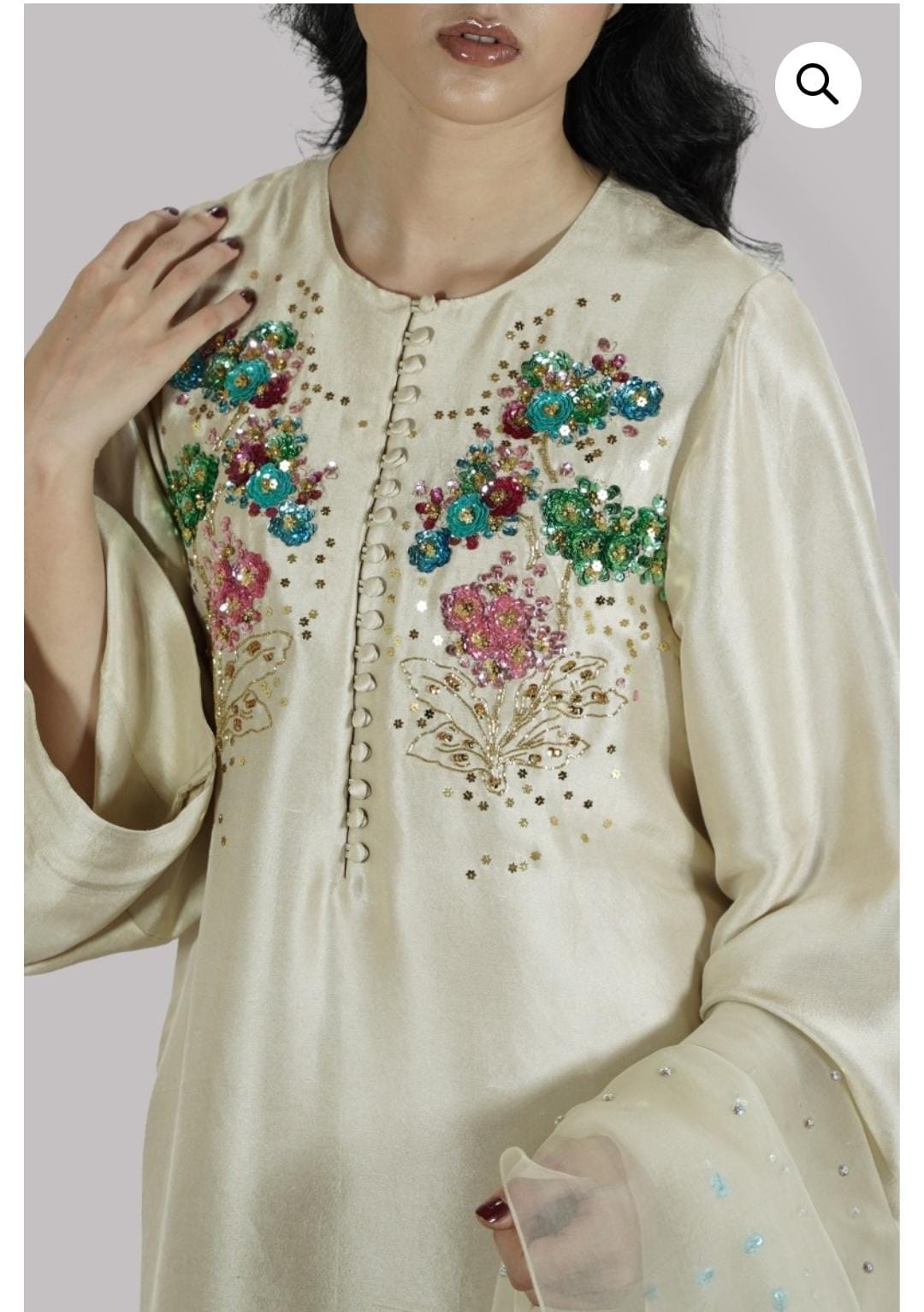 3 Piece Stitched Silk Organza Dress - Ready To Wear