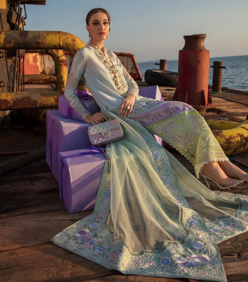 03 Piece Shade V Panel Fully Heavy Embroidered suit