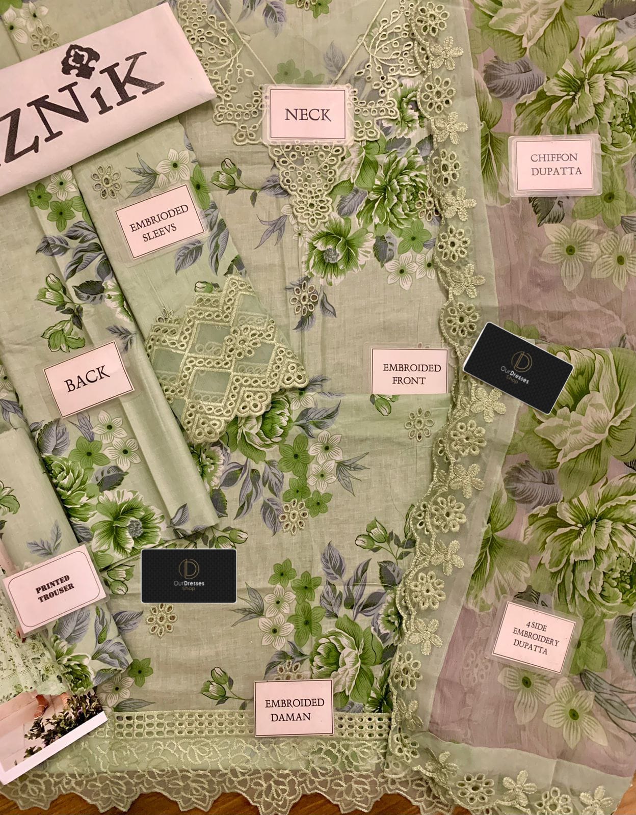 •Diamond Printed Chiffon Dupatta With 4 Sided Embroidered Laced