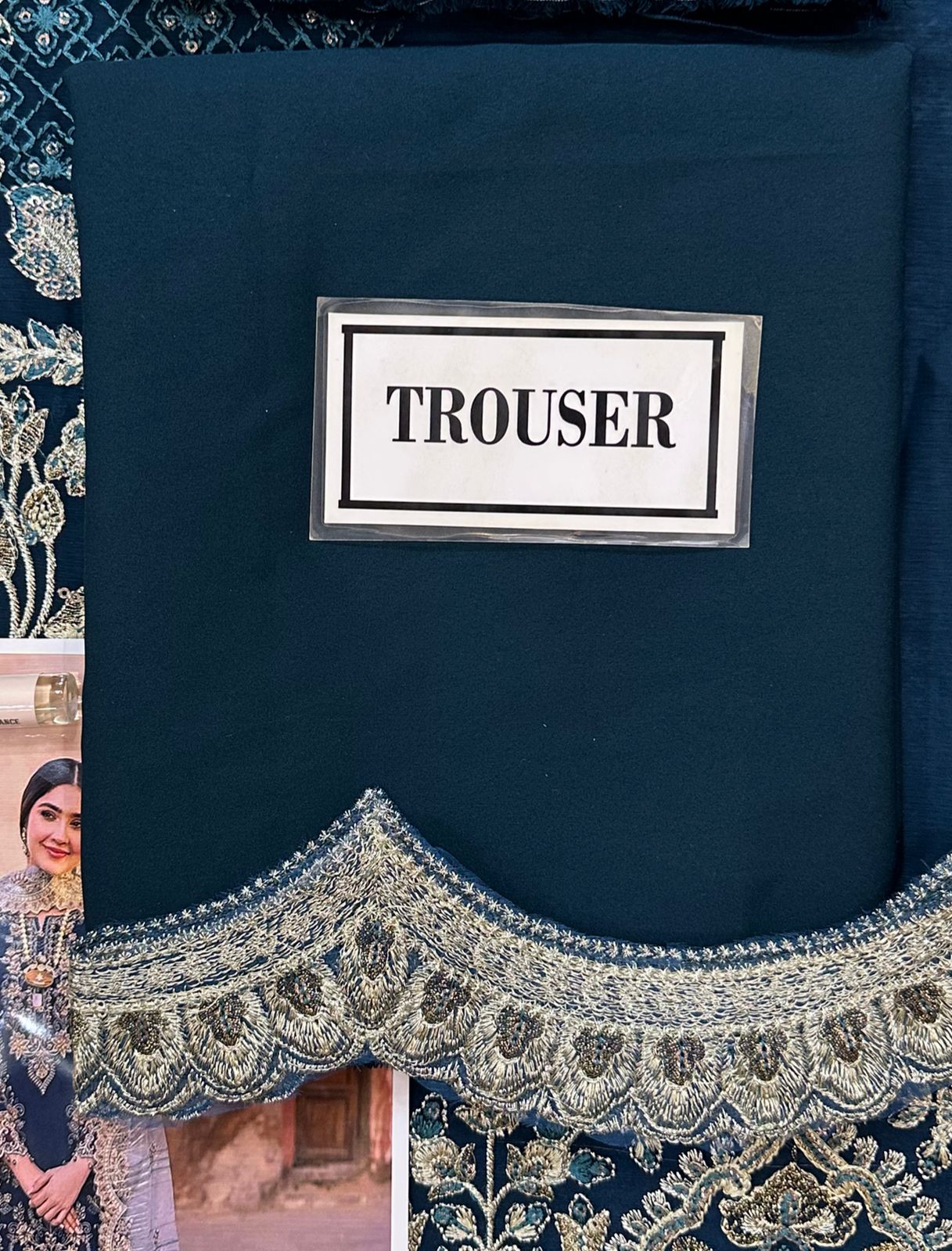 Organza embroidered border for trouser.