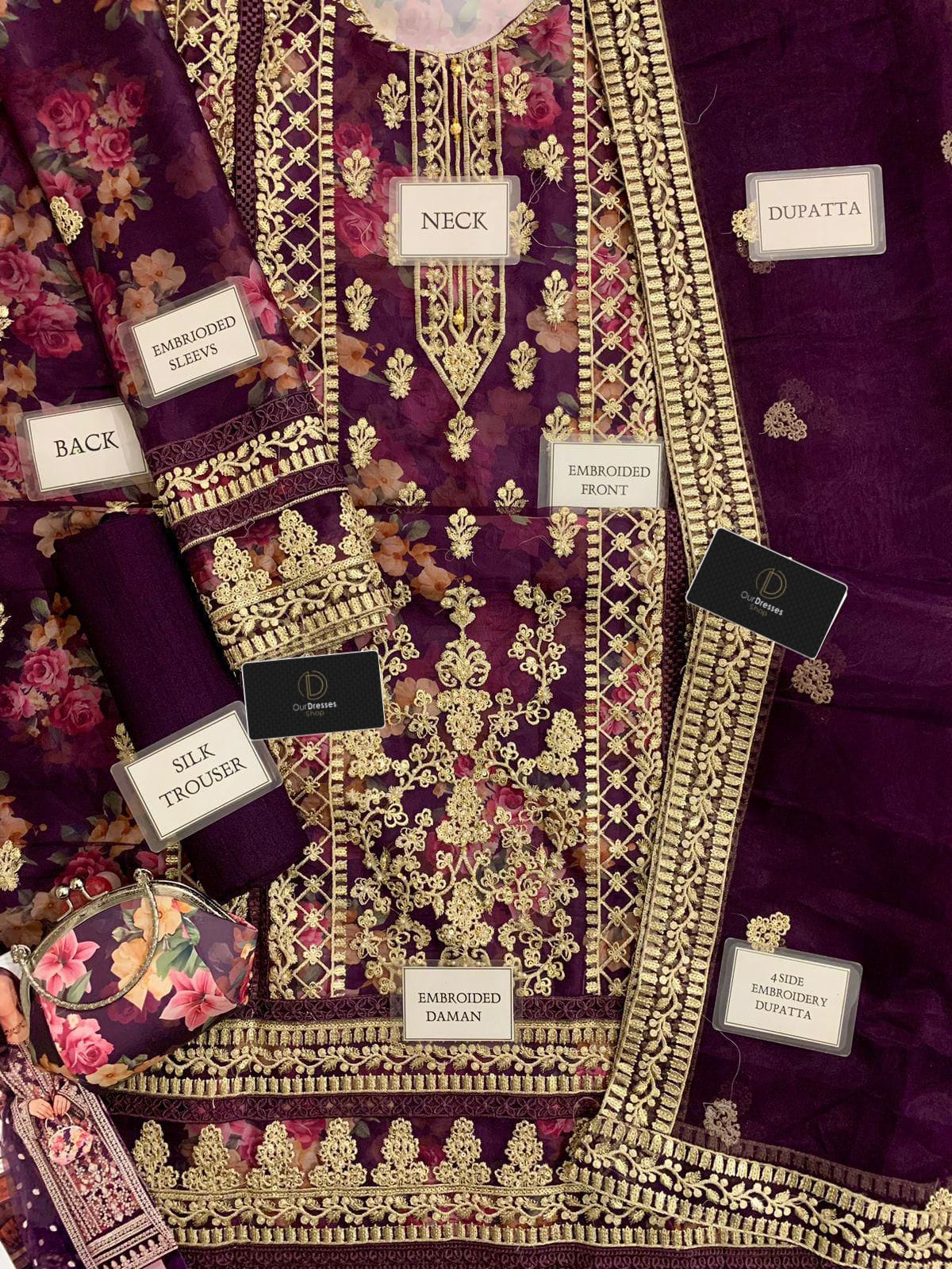 3 Piece Stitched Embroidery Organza Suit - Ready To Wear