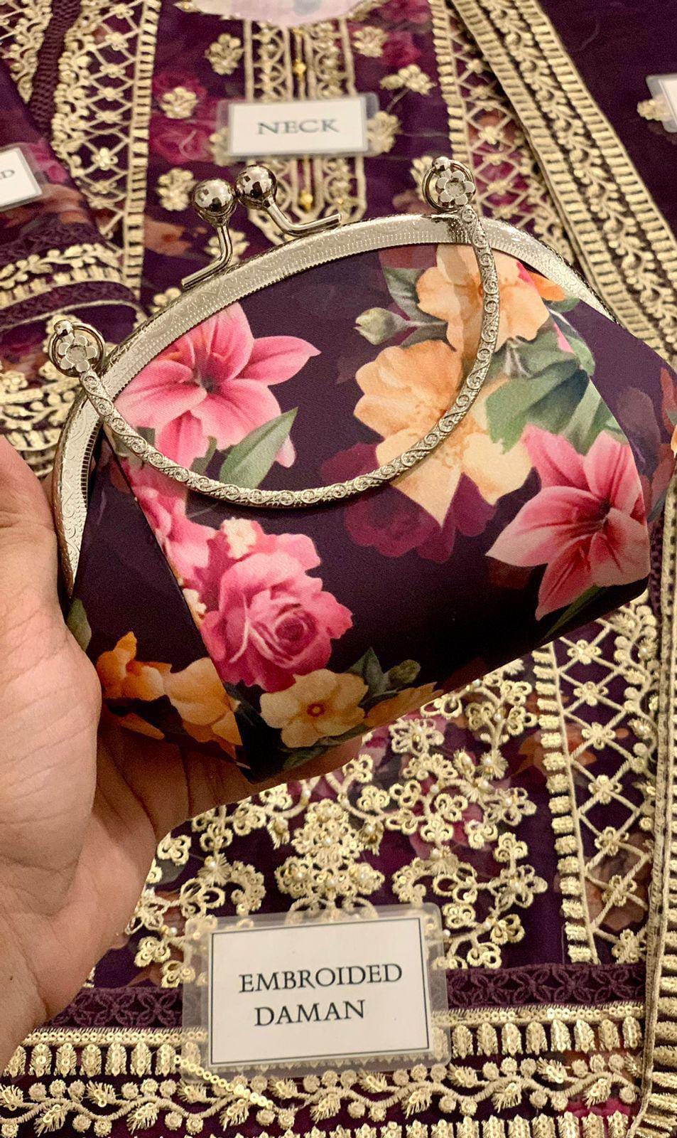 ORGANZA EMBROIDERED SEQUENCE FRONT EMBELLISH WITH HANDWORK AND HANGING TUSSLES ON DAMAN