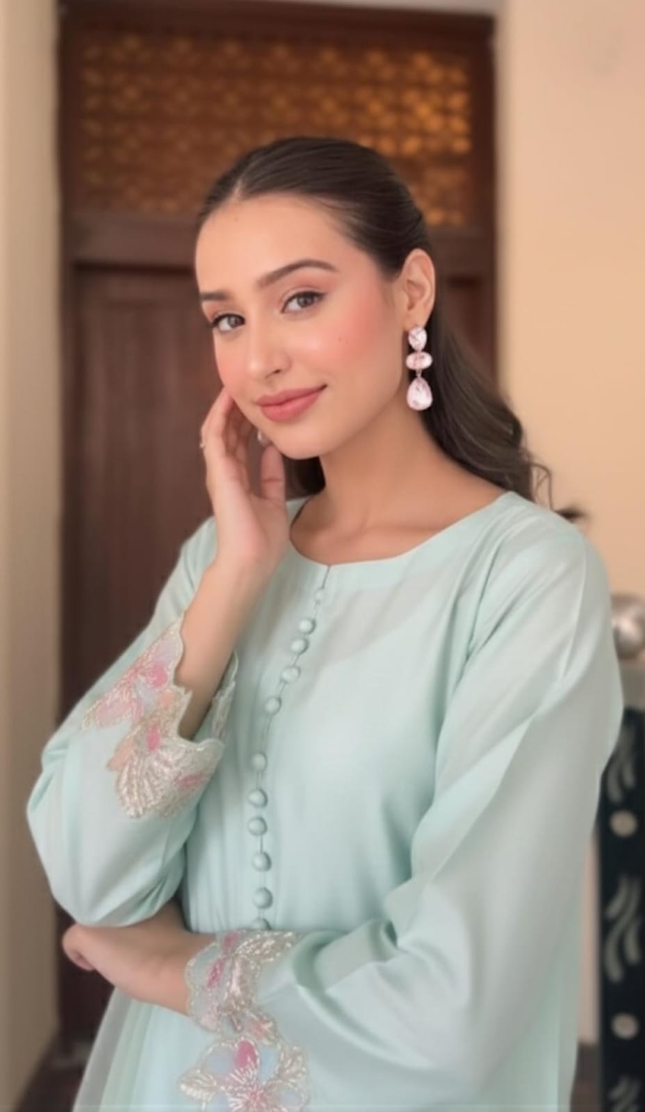 3 Piece Formal Suit featuring premium Khadi Silk fabric, paired with an elegant 3-tone Organza Dupatta. Beautifully embellished with delicate Cutdana floral work, giving a graceful and luxurious formal look—perfect for festive and evening wear.