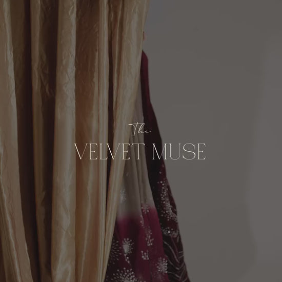 • Velvet embroidered sleeves with thread, tilla, and sequins work