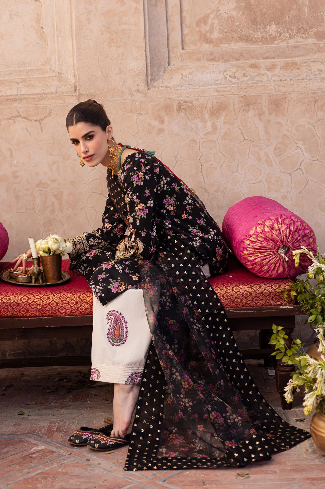 Batik Silk Luxury Formals Collection With Clutch Bag-Black Flora