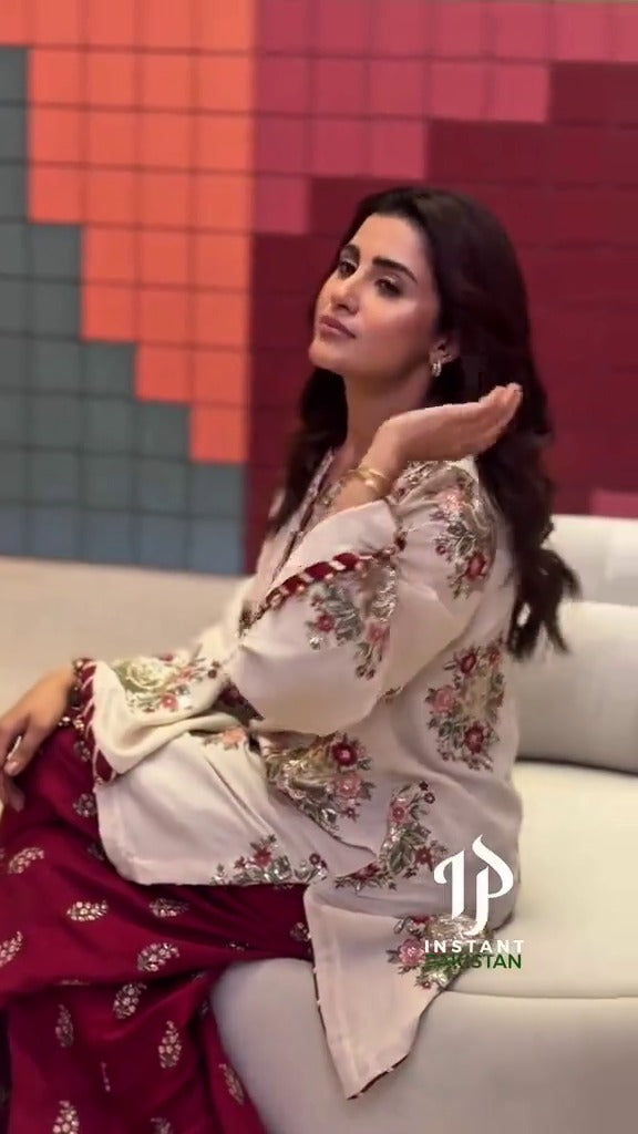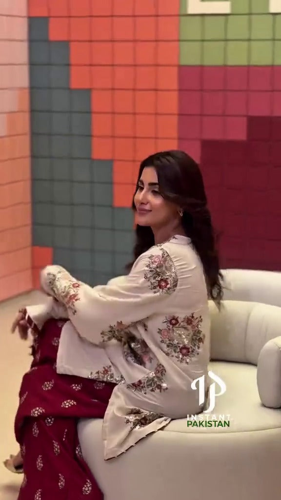 Luxury Embroidered Formal Wedding Collection-Off White & Reddish Maroon