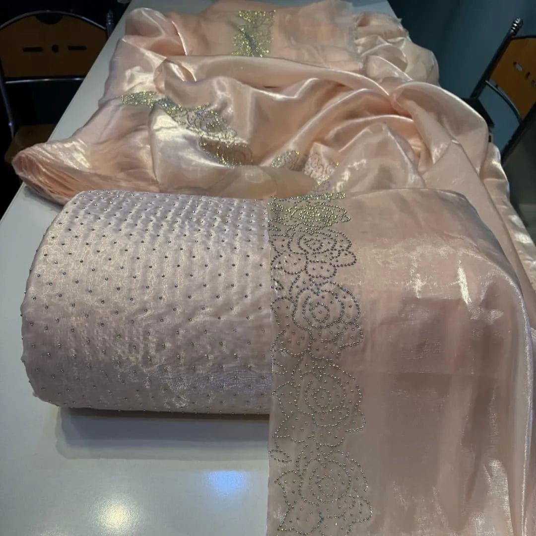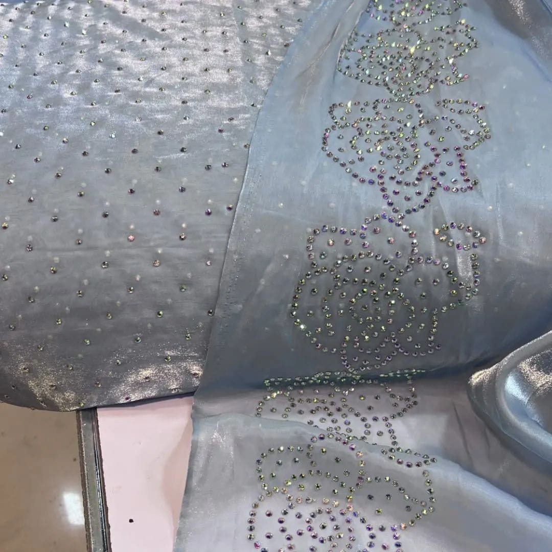 Fabric Sheesha Silk stone work cut work on duppatta