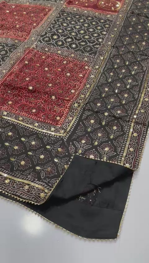 *Pure shamooz silk ajrak design duppaty with handwork duappaty*