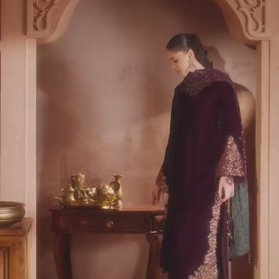 Luxury Embroidered Velvet Wedding Suit - Plum